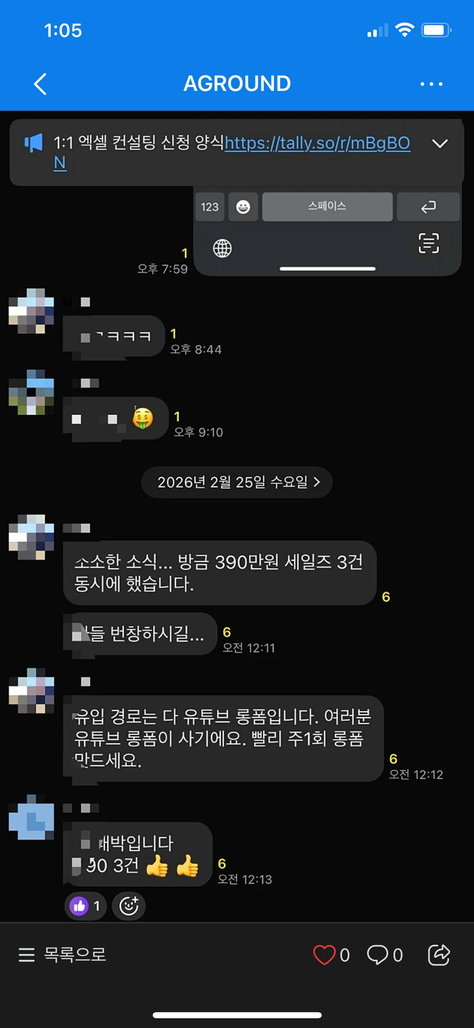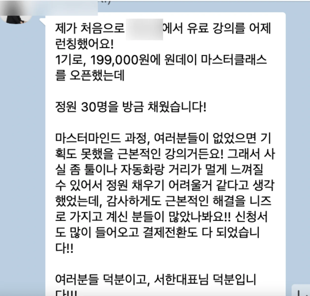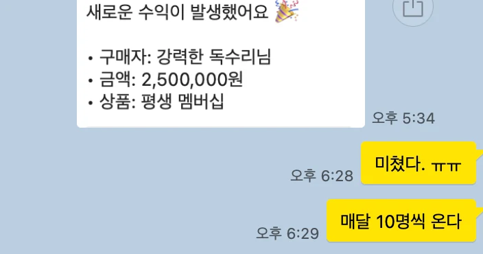 결제 링크를 보낸 지 3분 만에 첫 결제가 들어왔습니다. 29시간 만에 30석이 전석 마감됐습니다. 따로 라이브를 하거나 사전 홍보를 한 적 없습니다. 노션으로 만든 랜딩 페이지 하나를 커뮤니티에 공유했을 뿐이었습니다. 이건 마케팅의 결과가 아닙니다. 8개월간 쌓인 신뢰의 결과입니다. 돈을 받으면 안 된다고 믿던 사람 8개월 전, 저는 바닥이었습니다. 실력이 없는 게 아니었습니다. 10년간 3D 영상을 만들면서 먹고살았고, 노션과 자동화를 다루는 기술도 있었습니다. 그런데 이상하게 벌지를 못했습니다. 나중에야 알았습니다. 마음 한편에 ‘돈을 받으면 안 된다’는 브레이크가 걸려 있었다는 걸. “결과를 내야만 가치가 있다”고 무의식적으로 믿고 있었고, 그래서 늘 쓸모를 증명하는 데 집착했습니다. 누군가에게 도움이 되면 괜찮아지는 것 같았고, 도움이 되지 못하면 존재할 이유가 없는 것 같았습니다. 그저 태어났으니 연명하는 기분으로 하루하루를 살았습니다. 2025년 8월, 마스터마인드에 합류했습니다. 1년을 내려놓고, 0에서 다시 당시 저에게는 1년간 운영하던 ADHD·AI 커뮤니티가 있었습니다. 작지만 제가 쌓아온 것이었습니다. 그런데 마스터마인드에 들어와서 보니, 이걸 그대로 키우는 건 아니겠다는 생각이 들었습니다. 주제가 달라지고 있었고, 방향도 바뀌고 있었습니다. 고민 끝에 결정했습니다. 유튜브 채널을 새로 만들고, 커뮤니티도 처음부터 다시 시작하겠다고. 유튜브는 마스터마인드 과제로 만들었습니다. 솔직히 과제가 아니었다면 첫 영상을 올리지 못했을 겁니다. 1년간 키운 걸 내려놓는 것도, 구독자 0명에서 다시 시작하는 것도, 혼자였다면 하지 못했을 결정이었습니다. 마스터마인드라는 환경이 있었기에 가능했습니다. ‘미리의 시스템 연구소’ — 유튜브도, 커뮤니티도, 전부 0에서 출발. 기여부터 시작했습니다 마스터마인드에서 가장 크게 와닿은 건 무의식의 중요성이었습니다. 저는 “결과를 내야만 가치가 있다”고 믿고 있었고, 그래서 처음에는 쓸모를 증명하는 데 집착했습니다. 웨비나, 템플릿, SaaS — 동시에 여러 개를 진행하면서 성과에 에너지가 쏠려 있었습니다. 그런데 코칭을 받고, 선배 기수들의 이야기를 들으면서, 하나의 문장이 저를 관통했습니다. “가장 이타적인 이기로부터 시작해야 진짜 이타적이 된다. ” 퍼주기만 하던 사람에서, 방향을 가진 사람으로 전환되는 순간이었습니다. 그래서 기여부터 시작했습니다. 단, 이번에는 방향을 가지고. 마스터마인드 안에서 대표님들의 사업에 직접 들어갔습니다. CRM이 필요한 대표님이 계시면 노션으로 시스템을 세팅해드렸고, 데이터 추적이 안 되는 분이 계시면 애널리틱스를 깔아드렸습니다. 머니코드 진단 사이트를 개발해드리기도 했고, 통합가계부를 만들어 배포하기도 했습니다. 바이브코딩이 필요한 대표님에게는 세팅부터 코칭까지 해드리면서 앱을 4개 만들었습니다. CRM 세팅만 6명의 대표님 사업에 직접 들어가서 했습니다. 이걸 만약 돈을 받고 했다면, 아주 저렴하게 잡아도 최소 1,200만원 이상이었습니다. 하지만 한 번도 돈을 받지 않았습니다. 바이브코딩 세팅과 코칭을 해드린 대표님 한 분이 이후 정말 좋은 성과를 내셨습니다. 나중에 감사하다며 50만원을 보내주셨는데, 그분이 성과를 내는 걸 지켜보는 것 자체가 저에겐 더 큰 경험이었습니다. 돈을 받고는 절대 얻을 수 없는 것 — 누군가의 사업이 실제로 돌아가는 과정에 깊이 들어가 보는 것, 그 과정에서 내가 뭘 잘하고 뭘 못하는지를 체감하는 것. 그게 기여를 통해 제가 얻은 것이었습니다. 그리고 이 기여들은 저도 모르는 사이에, 제 콘텐츠의 씨앗이 되고 있었습니다. 아무도 없는 방에서 시작한 커뮤니티 9월 2일, 미시소(미리의 시스템 연구소) 오픈톡방을 열었습니다. 첫 달에 100명이 들어왔고, 첫 라이브에 65명이 참가했습니다. 그런데 그 다음이 문제였습니다. 10월에 올라온 메시지는 딱 2개. 활성 사용자 1명. 카톡방을 열어봐도 아무 일도 일어나지 않는 날들이 이어졌습니다. “이거 접어야 하나” 하는 생각이 스치지 않았다면 거짓말입니다. 하지만 마스터마인드에서 배운 게 있었습니다. 조용한 시기는 멈춘 게 아니라, 다음을 준비하는 시간이라는 것. 8월, 9월, 10월 — 이 석 달은 배우는 데 집중하던 때였습니다. 그 기간에 대표님들의 사업에 들어가서 시스템을 세팅해드리면서, 강의 콘텐츠의 뼈대가 만들어지고 있었습니다. 혼자였다면 10월에 멈췄을 겁니다. 같은 길을 가는 사람들이 옆에 있었기에, 조용한 시기에도 흔들리지 않을 수 있었습니다. 기여가 콘텐츠가 된 순간 12월, 모든 게 바뀌었습니다. 대표님들의 CRM을 세팅해드린 경험은 CRM 웨비나가 됐습니다. 노션 기초를 알려드리면서 정리한 내용은 노션 풀강의 영상이 됐습니다. 바이브코딩을 코칭해드리면서 만든 자료는 바이브코딩 강의가 됐습니다. 기여를 위해 준비했던 것들이, 유튜브 콘텐츠로 세상에 나간 겁니다. 결과는 폭발적이었습니다. 노션 풀강의는 조회수 3만, 바이브코딩 강의는 1. 9만을 찍었습니다. 한 달 만에 커뮤니티가 155명에서 555명이 됐습니