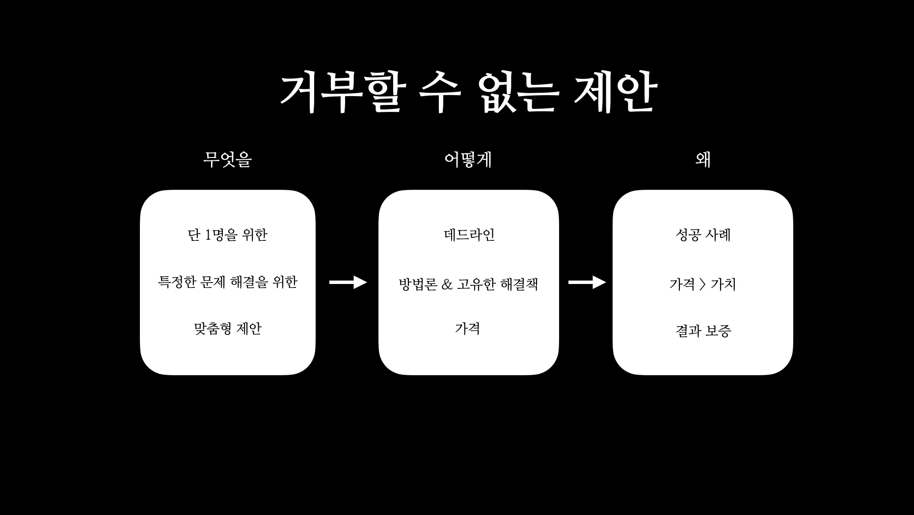 ์ ์์ ์ ๊ตฌ์ฑํ๋ ๊ฒ์ ์ค์ํ๋ค. ์ ์์ ์ฌ์ ์ ๊ตฌ์ฑํ๋ ํต์ฌ ๊ธฐ๋ฅ๊ณผ ๊ฐ์ ๊ฒ์ด๊ธฐ ๋๋ฌธ์ด๋ค. ์ข์ ์ ์์ ํ๋งค๋ฅผ ์ฝ๊ฒ ๋ง๋ค์ด์ฃผ๋ฉฐ, ํ๋งค ์ดํ์ ๊ณ ๊ฐ ์ฑ๊ณต๊น์ง ์ข์ง์ฐ์งํ๋ค. ๊ทธ๋ ๊ธฐ์ ๋ง์ ์ฌ์ ๊ฐ๋ค์ด ์์ ์ ์ ์์ ์ด๋ค ์์ผ๋ก ๊ตฌ์ฑํด์ผํ ์ง์ ๋ํด์ ๋ง์ ์๊ฐ ๊ณ ๋ฏผํ๋ ๊ฒ์ด ์ฌ์ค์ด๋ค. ๋ฐ๋ผ์ ์ด๋ฒ ๊ธ์์๋ ๋ด๊ฐ ์ฌ์ ์ ์ ๊ฐํ๋ฉด์ ๋ฐฐ์ด '๋ฌด์์ด ์ข์ ์ ์์ ๋ง๋๋ ๊ฐ'๋ผ๋ ์ฃผ์ ๋ก ์ด์ผ๊ธฐ๋ฅผ ํด๋ณด๊ณ ์ถ๋ค. ๋๋ ์ง์ ์ฐฝ์ ์ ํธํ๊ฒ ๋๋ ์ํํธ์จ์ด๋ฅผ ์ด์ ์ค์ด๋ค. ์ด ์ํํธ์จ์ด๋ฅผ ๋ง๋ค๊ธฐ ์ํด์ ๋๋ ์ค์ค๋ก ์ง์ ์ฐฝ์ ์ ์ด์ํด๋ด์ผํ๋ค. ๊ทธ๋์ผ๋ง์ด ๊ณ ๊ฐ๋ค์ ์ฌ์ ์ ์ง์ฌ์ผ๋ก ์ดํดํ ์ ์๋ค๊ณ ํ๋จํ๊ธฐ ๋๋ฌธ์ด๋ค. ๊ทธ๋์ 2025๋ 3๋ถ๊ธฐ ๋์์ ์ง์ค์ ์ผ๋ก ์ฝ์นญ, ์ปจ์คํ , ๋ํ, ์ฑ๋ฆฐ์ง, ์ปค๋ฎค๋ํฐ ์ํ์ ํ๋งค๋ฅผ ํด๋ดค๋ค. ๊ทธ ๊ฒฐ๊ณผ, 20๊ฑด์ 9. 9๋ง์ 4์ฃผ ์ฑ๋ฆฐ์ง ์ํ, 2๊ฑด์ 99๋ง์ ์ฝ์นญ, 1๊ฑด์ 249๋ง์ ์ฝ์นญ, 1๊ฑด์ 550๋ง์ ๋ํ ์ํ์ ํ๋งคํ๊ณ ์ด๋ ์ฒ์์ผ๋ก ์ 1์ฒ๋ง์ ๋งค์ถ๊ณผ ๊ฐ์ฅ ๊ทผ์ ํ ๊ฒฐ๊ณผ๋ฅผ ๋๋ค. ๊ทธ ๊ณผ์ ์์ ๋ค์๊ณผ ๊ฐ์ ๊ณ ๋ฏผ์ ๋ง์ด ํ๋ค. ๋๋์ฒด ๋๊ตฌ๋ฅผ ์ํ ์ ์์ ๋ง๋ค์ด์ผํ๋๊ฐ. ์ด๋ค ์ ์์ ๋ง๋ค์ด์ผํ๋๊ฐ. ๊ฐ๊ฒฉ์ ์ผ๋ง๋ฅผ ๋ง๋ค์ด์ผํ๋๊ฐ. ์ด ์ฌ๋์ ์ ๋์๊ฒ ๊ตฌ๋งคํด์ผํ ๊น. ๊ทธ๋ฆฌ๊ณ ๋ด๊ฐ ๋ด๋ฆฐ ์ง๋ฌธ์ ๋ํ ๋ต๋ณ์ ๋ค์๊ณผ ๊ฐ๋ค. 1. ๋๊ตฌ๋ฅผ ์ํ. ์ฒซ ์์ฅ ์ง์ ์ ์ํด์๋ ๋๋ ๋ง๊ณ , ๋ฑ 1๋ช ์ ๊ณ ๊ฐ๋ง์ด ํ์ํ๋ค. ์ค์ง ๋จ 1๋ช ์๊ฒ๋ง ์ง์คํ๋ค. ์ด๊ธฐ์๋ ๋ชจ๋ ์ด๋ค์ ์๊ฐํ์ง ์๋๋ค. ์ด๊ธฐ์๋ ๋น์ ์ ์ ํ์ ๋ง๋ค์ด์๋ ์๋๋ค. ๋์ ๋จ ํ ์ฌ๋๋ง์ ์ํ ์ ์๋ง ์๊ฐํ๋ค. '์ด ์ฌ๋'์ '์ด ๋ฌธ์ '๋ฅผ ํด๊ฒฐํ๊ธฐ ์ํ ์ ์์ ๋ง๋ ๋ค. ๋ฌผ๋ก ์ด๋ฐ์๋ ๋นํจ์จ์ ์ด๋ค. ํ ์ฌ๋, ํ ์ฌ๋์๊ฒ ๋ง์ ์๊ฐ๊ณผ ์๋์ง๋ฅผ ์ฌ์ฉํด์ผํ๊ธฐ ๋๋ฌธ์ด๋ค. ํ์ง๋ง, ํ ์ฌ๋์ ์ํ ์ ์ ์ ์์ ๋ฐ๋ณตํ๋ค๋ณด๋ฉด, ์ฌ๋๋ค์ด ๊ฒช๋ ๊ณตํต๋ ๋ฌธ์ ์ ์ด ๋ณด์ด๊ธฐ ์์ํ๋ค. ๊ทธ๊ฒ ๋ฐ๋ก ํ์ฅ ๊ฐ๋ฅํ ์ ํ์ด ๋๋ ๊ณผ์ ์ด๋ค. ์ด๊ฒ ๋ฐ๋ก 1:1 ์ฝ์นญ์ด ๊ทธ๋ฃน ์ฝ์นญ์ด ๋๋ ๊ณผ์ ์ด๋ค. ์ด๊ฒ ๋ฐ๋ก ๊ทธ๋ฃน ์ฝ์นญ์ด ๊ฐ์๋ก ํ์ํ๋ ๊ณผ์ ์ด๋ค. 1:1 ์ฝ์นญ์ ํตํด์ ํ ์ฌ๋์ ๋ฌธ์ ํด๊ฒฐ์๋ง ์ง์คํ๋ ๊ฒ์ ๋ฐ๋ณตํ๋ค๋ณด๋ฉด, ๊ทธ ๊ณผ์ ์ ์์คํ ํํ ๊ฒ์ด ๋ฐ๋ก ๊ฐ์์ธ ๊ฒ์ด๋ค. ๋ง์ ์ฌ์ ๊ฐ๋ค์ด ์ด ๊ณผ์ ์ ๊ฑฐ์น์ง ์๊ณ , ๋ฐ๋ก ์ ํ์ ๋ง๋ ๋ค. ๊ทธ๋ ๊ธฐ์ ๋๋์ฒด ์ด๋ค ์ ํ์ ๋ง๋ค์ด์ผํ๋ ์ง์ ๋ง๋งํจ์ ๋๋๋ค. ๋ด๊ฐ ์ ์ํ๊ณ ์ถ์ ํด๊ฒฐ์ฑ ์ 5-10๋ฒ์ ๋จ 1๋ช ์ ๊ณ ๊ฐ์๊ฒ๋ง ์ง์คํ๋ ๊ฒ์ด๋ค. ์ด๊ฑธ ๋ฐ๋ณตํ๋ค ๋ณด๋ฉด ์์ฐ์ค๋ฝ๊ฒ '์ ํ'์ด ๋ง๋ค์ด์ง๋ค. 2. ๊ฐ๊ฒฉ์ ์ผ๋ง๋ฅผ. ์ฌ๋๋ค์ ๊ฐ์น > ๊ฐ๊ฒฉ์ผ ๋ ๊ตฌ๋งคํ๋ค. ๊ทธ๋ฆฌ๊ณ ์ฐ๋ฆฌ์ ์ญํ ์ [๊ฐ์น >>>>>>>>>>>>>>> ๊ฐ๊ฒฉ]์ฒ๋ผ ์ต๋ํ ๊ฐ๊ฒฉ ๋๋น ๊ทธ ๊ฐ์น๊ฐ ๋๋ฌด ์ข์ ๋๋จธ์ง, ๊ตฌ๋งคํ์ง ์์ผ๋ฉด ๋ฉ์ฒญํ ์ ๋๋ก ๋ง๋๋ ๊ฒ์ด๋ค. ๋ด๊ฐ ์ ์ํ๊ณ ์ถ์ ๊ฒ์ 50๋ง์ - 500๋ง์ ์ฌ์ด์ ์ ์์ ๊ตฌ์ฑํ๋ ๊ฒ์ด๋ค. ๊ทธ๋ฆฌ๊ณ ๊ทธ ๊ฐ๊ฒฉ์ 10๋ฐฐ ์ด์์ ๊ฐ์น๋ฅผ ๋ด๋ ๊ฒ์ด๋ค. ์ด ๊ฐ๊ฒฉ ์ฐจ์ด๋ ๋น์ ์ด ์ง๊ธ๊น์ง ๋ง๋ค์ด ์จ ์ ๋ฌธ์ฑ & ๊ฒฝํ & ์ฑ๊ณต ์ฌ๋ก ๋ฑ์ ๊ธฐ๋ฐ์ผ๋ก ๊ตฌ์ฑํ๋ค. ์ฐ์ ๊ฐ๊ฒฉ์ด ๋๋ฌด ๋ฎ๋ค๋ฉด, 1) ์ง์งํ ๊ตฌ๋งค์๊ฐ ์๋ ๊ฐ๋ฅ์ฑ์ด ๋์ ๋ฟ๋๋ฌ 2) 